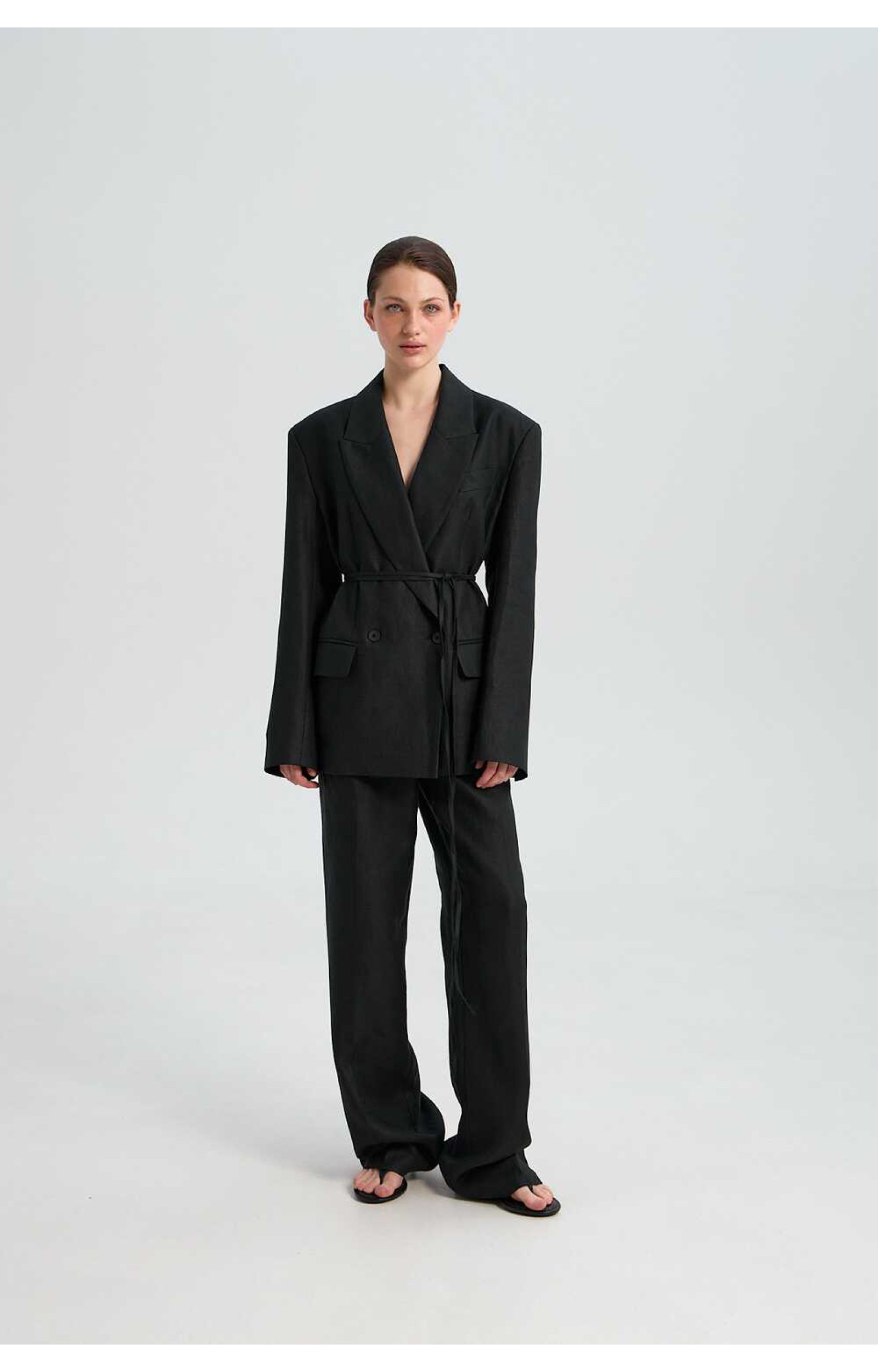 Brussel Scwarz Leinen Blazer von L'eskizzo