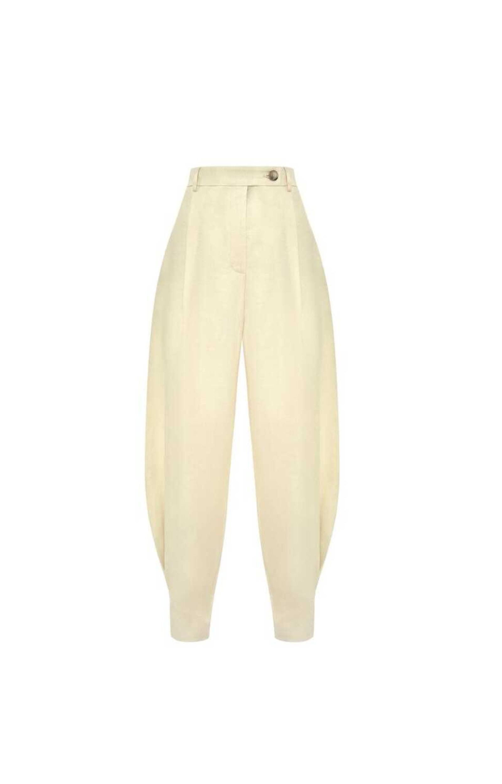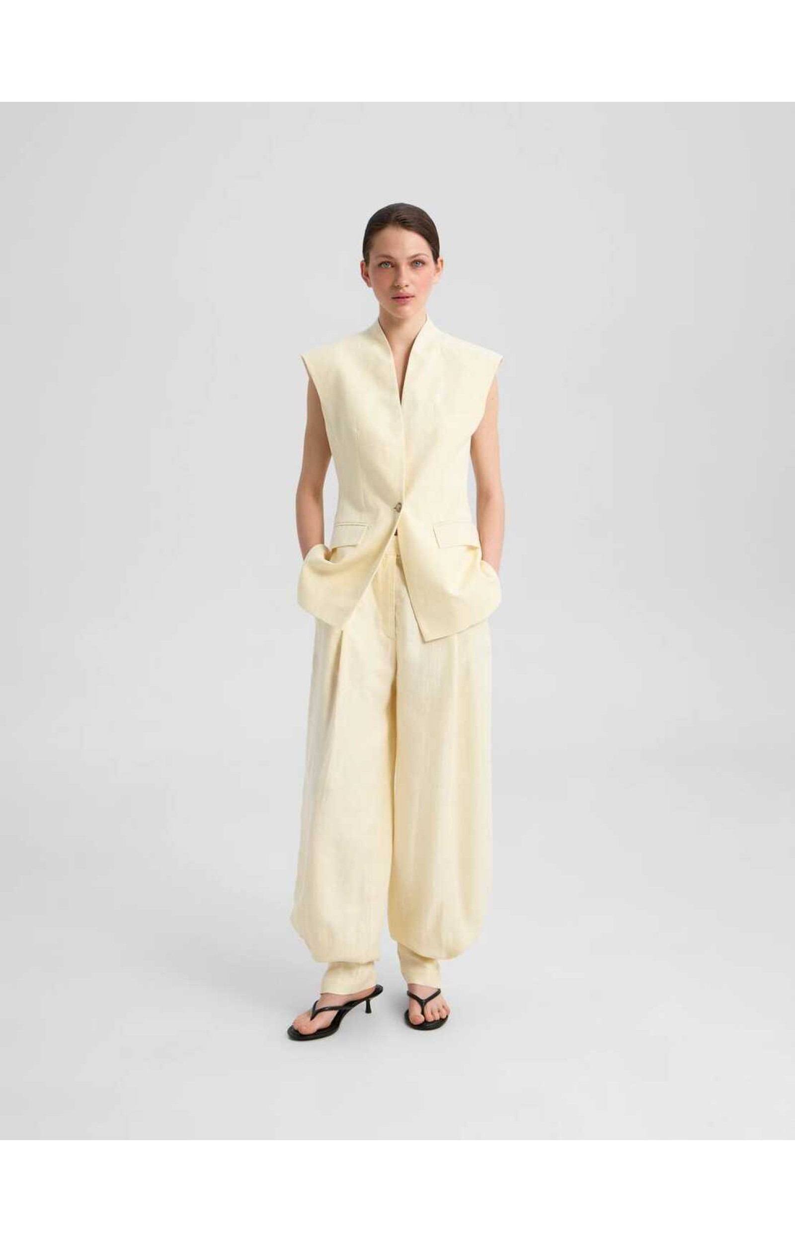 Gefertigt aus 100 % Leinen, bietet sie Leichtigkeit und ein angenehmes Tragegefühl und verleiht dem Look Natürlichkeit. Mit ihrem hohen Bund und der zum Saum hin schmaler werdenden Silhouette schafft die Hose einen eleganten und modernen Look. Ein Reißverschluss und ein Knopf vorne sorgen für eine bequeme Handhabung, und klassische Seitentaschen sorgen für Praktikabilität. Die Hose hat kein Futter, was sie noch bequemer und leichter macht.