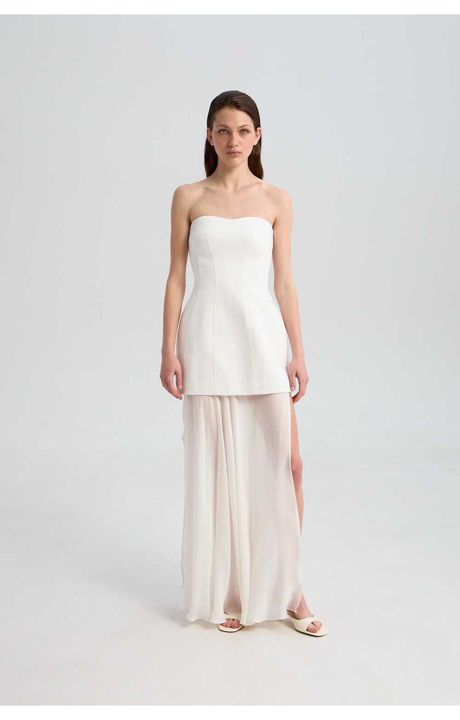 Der halbtransparente Rock Laura White, aus Naturmaterial, kann separat erworben werden. Fragen Sie unsere Berater.