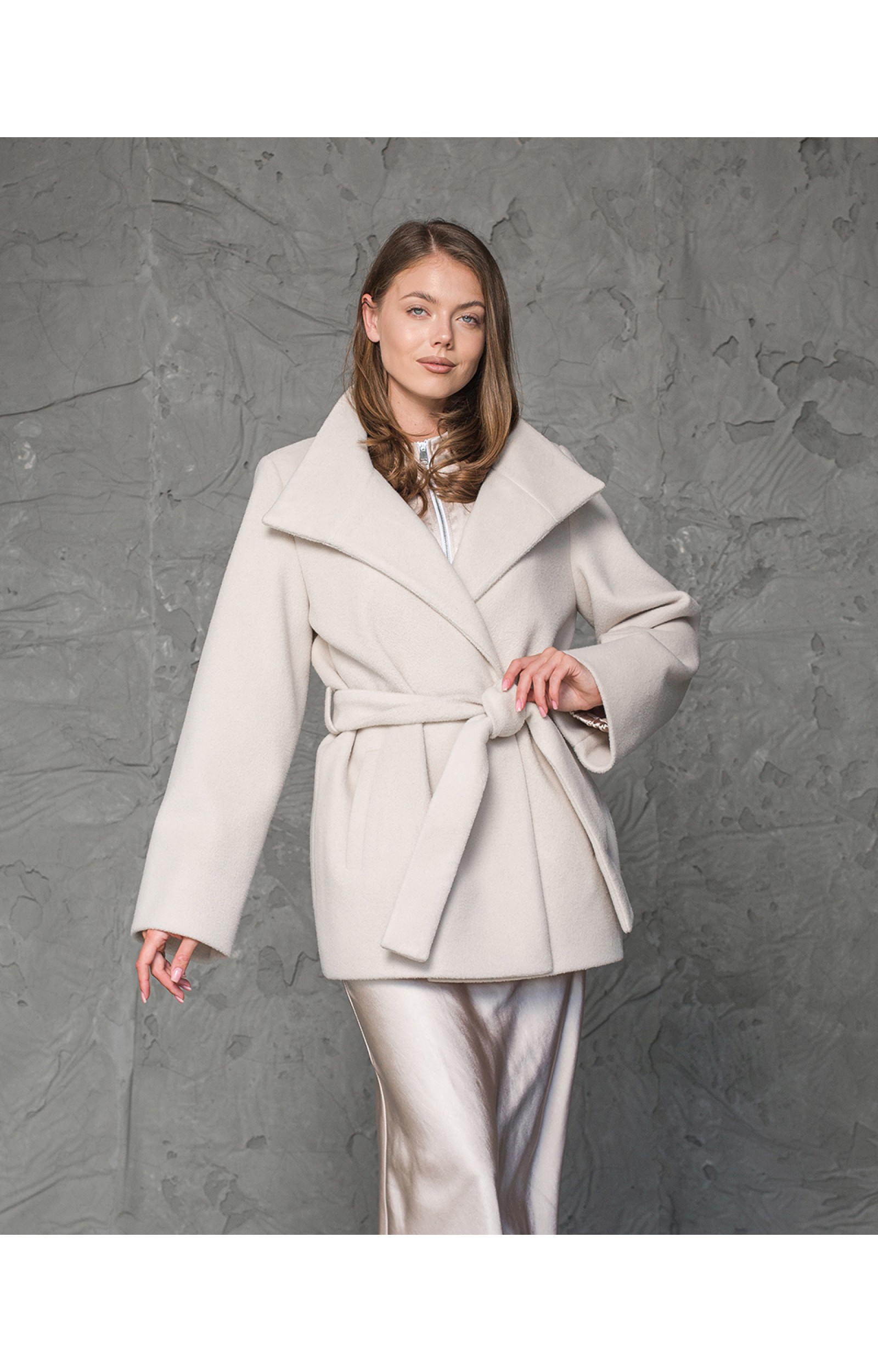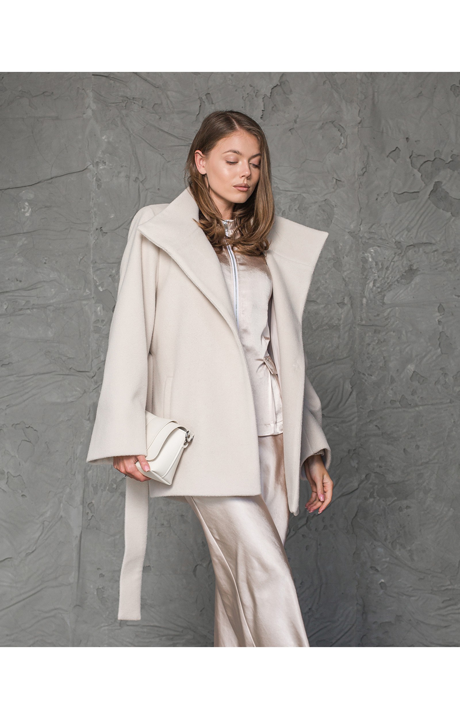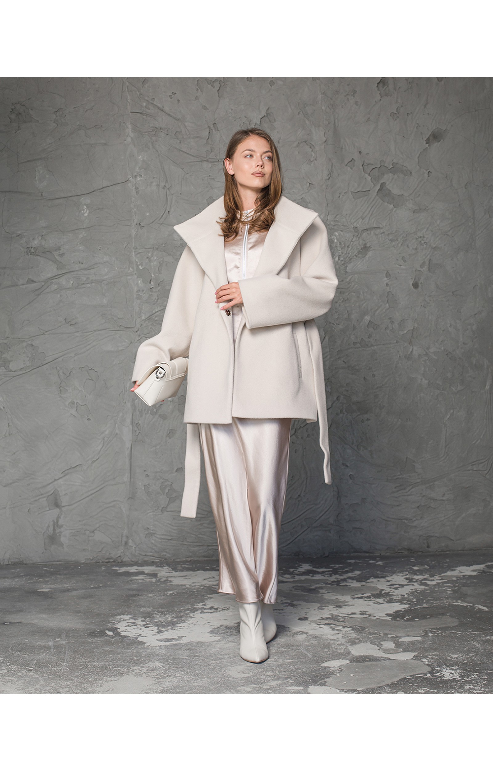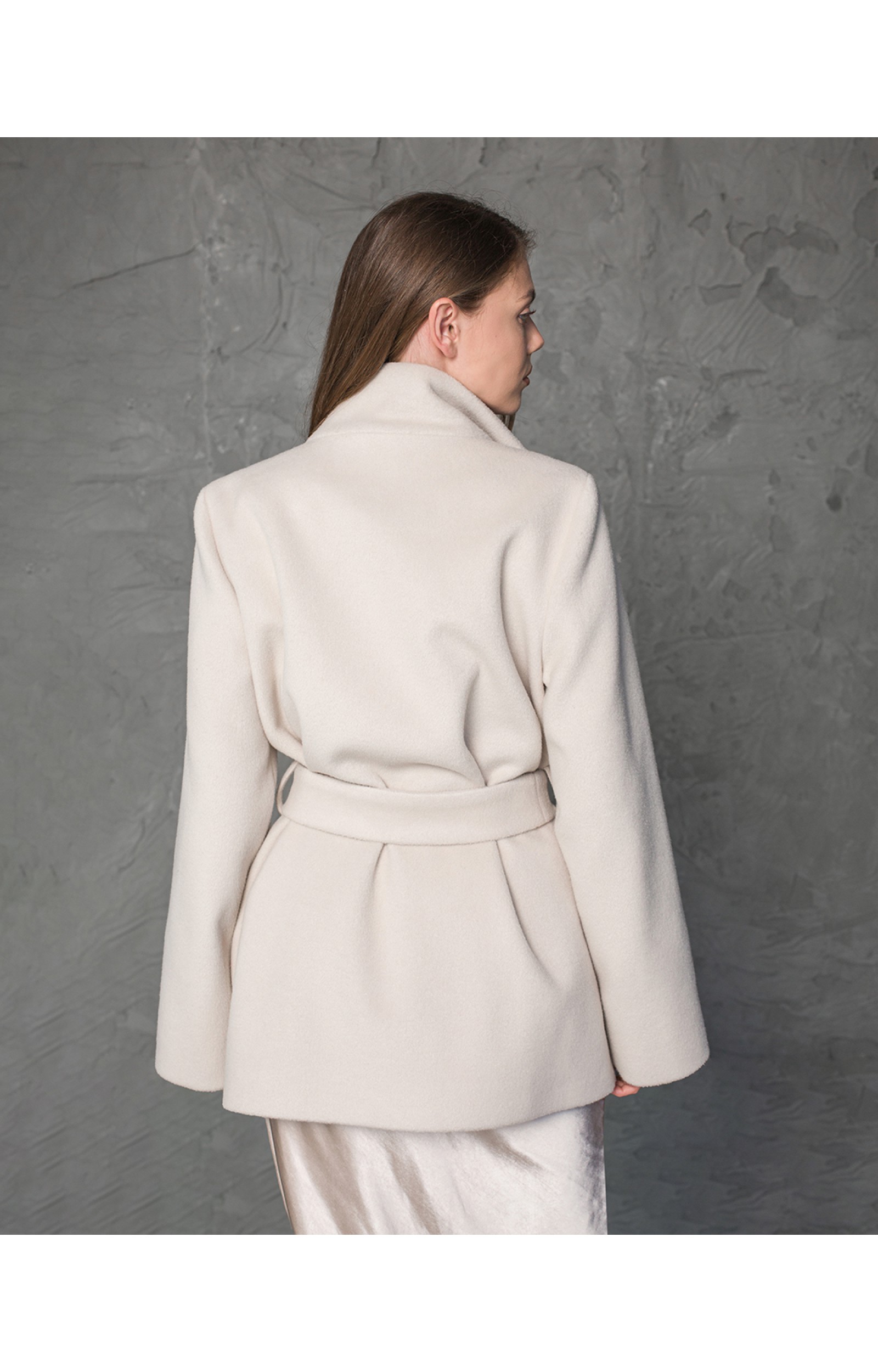 Der Kurzmantel von Maha in elegantem Ivory besticht durch seine architektonische Linienführung und funktionale Eleganz.
