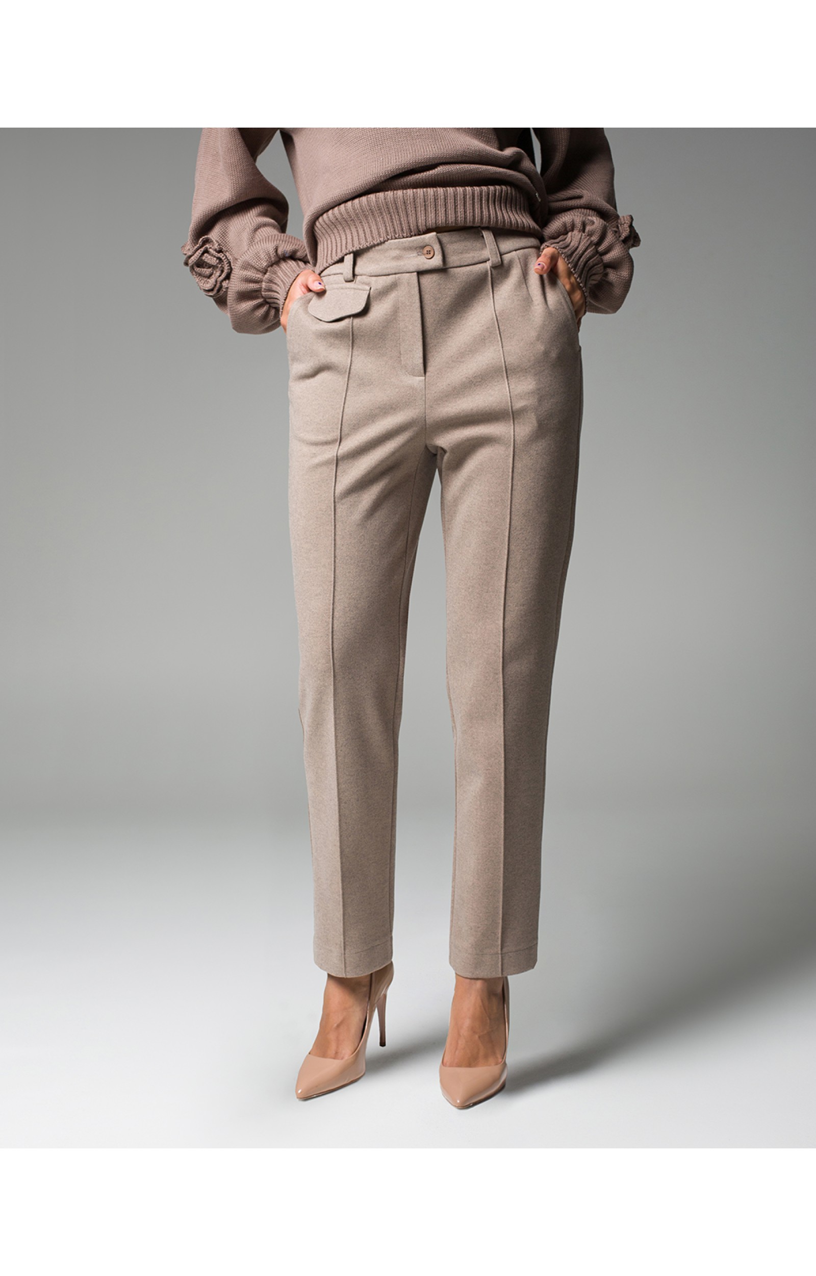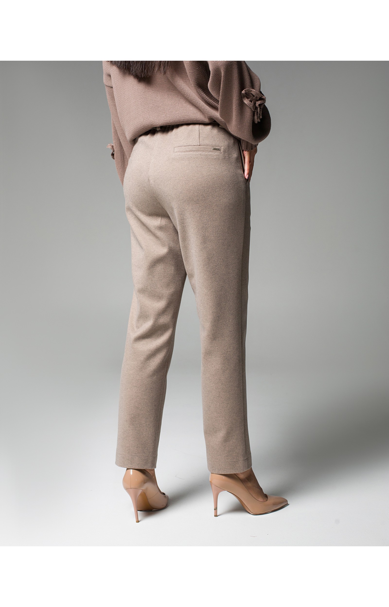 Das Modell mit mittlerer Leibhöhe besticht durch Bügelfalten auf der Vorderseite, die die Silhouette optisch strecken. Der elastische Bund am Rücken sorgt für eine optimale Passform.