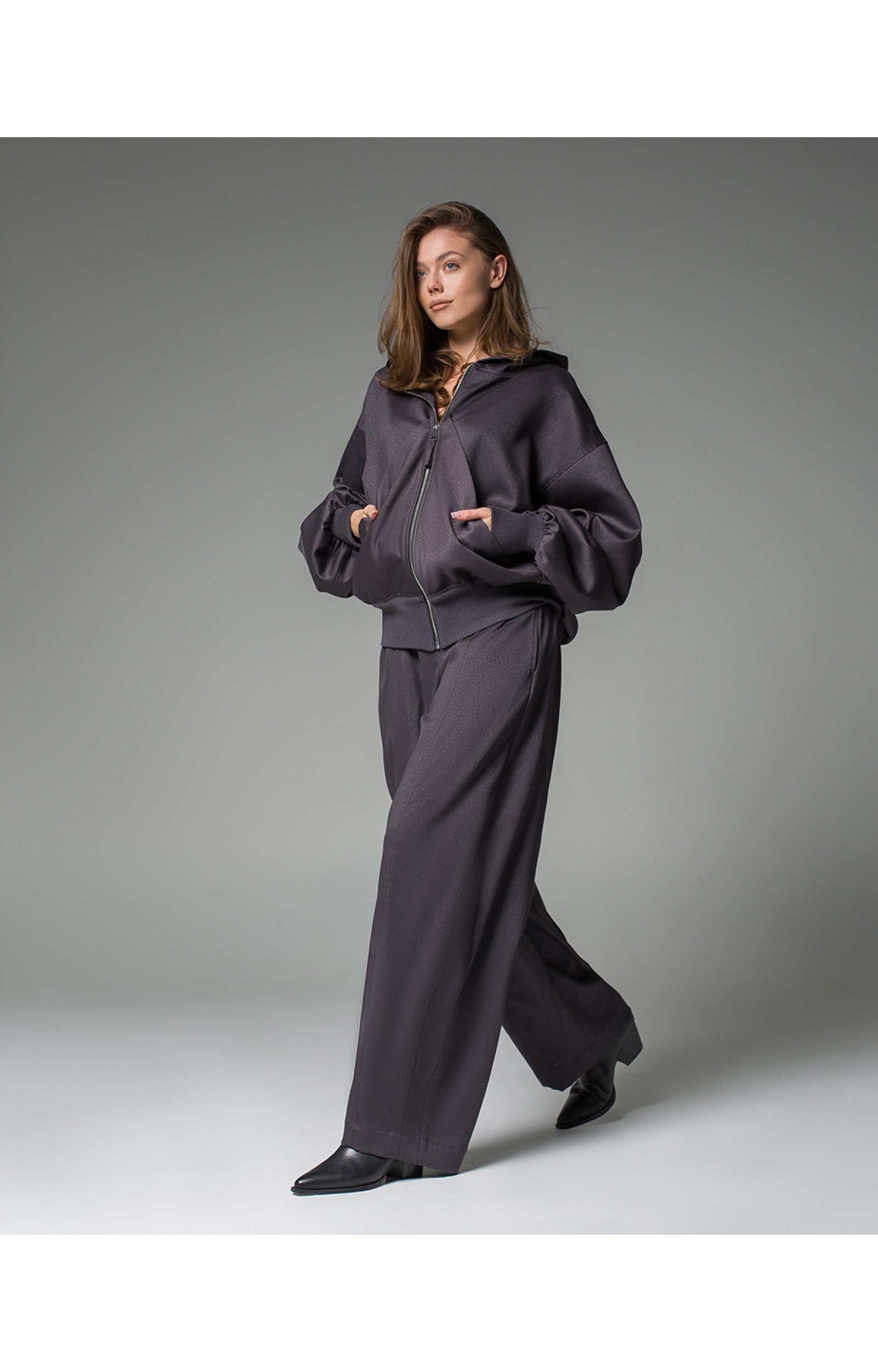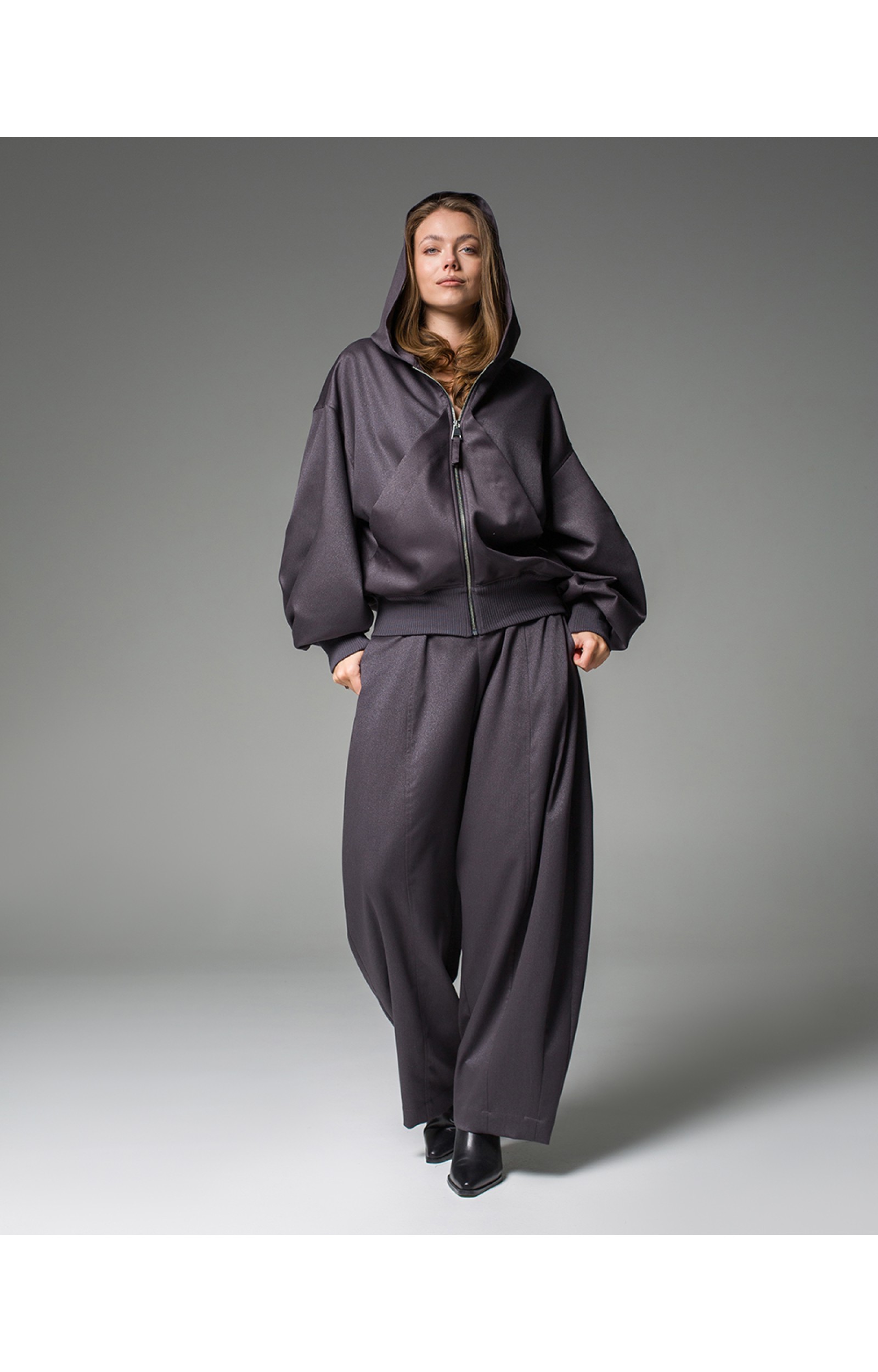 Maha Set: Jacke mit Kapuze und Barrel-Hose (Dunkelgrau)
