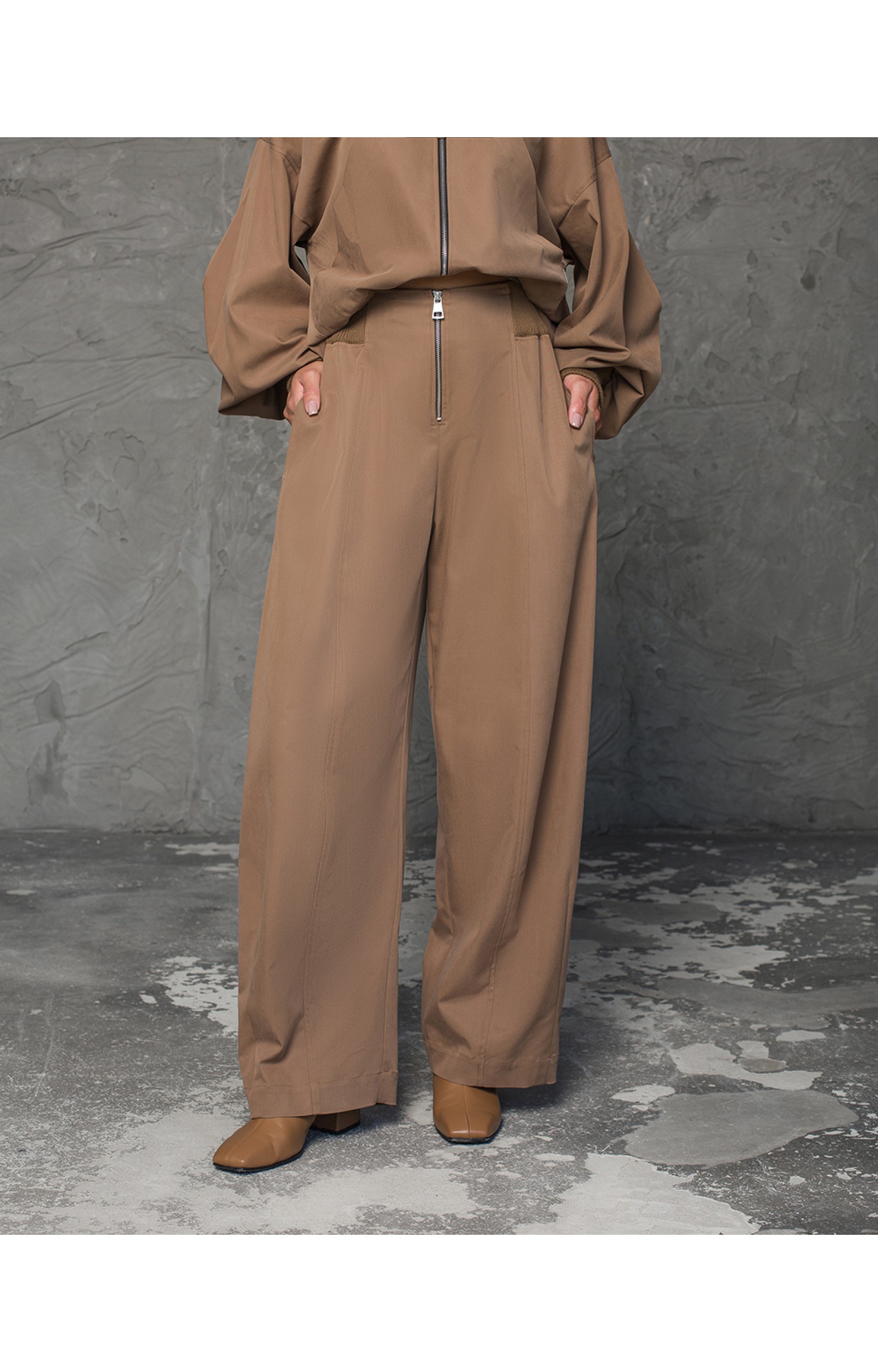• Hose: Moderne Barrel-Silhouette (weit am Knie, schmal zum Saum). Mit markantem Reißverschluss und elastischem Strickbund für eine perfekte Passform.