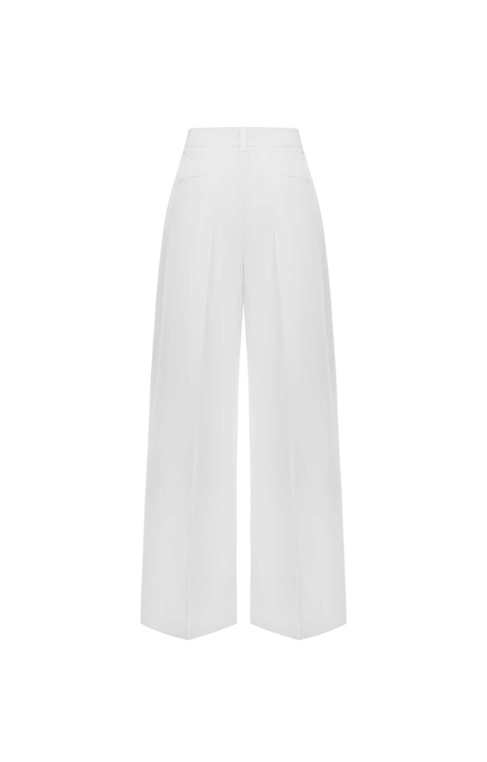 Diese elegante Palazzo-Hose mit mittlerer Leibhöhe lässt sich ideal mit dem Brussel White Blazer kombinieren und schafft so einen raffinierten und kompletten Look. Hergestellt aus einer leichten und angenehmen Seide-Viskose-Mischung, bietet sie Komfort und Bewegungsfreiheit. Klassische Seitentaschen sorgen für Praktikabilität, während der Reißverschluss und der Knopf einen einfachen Verschluss garantieren. Diese Hose ist perfekt für alle, die eine Kombination aus Eleganz und Komfort schätzen.