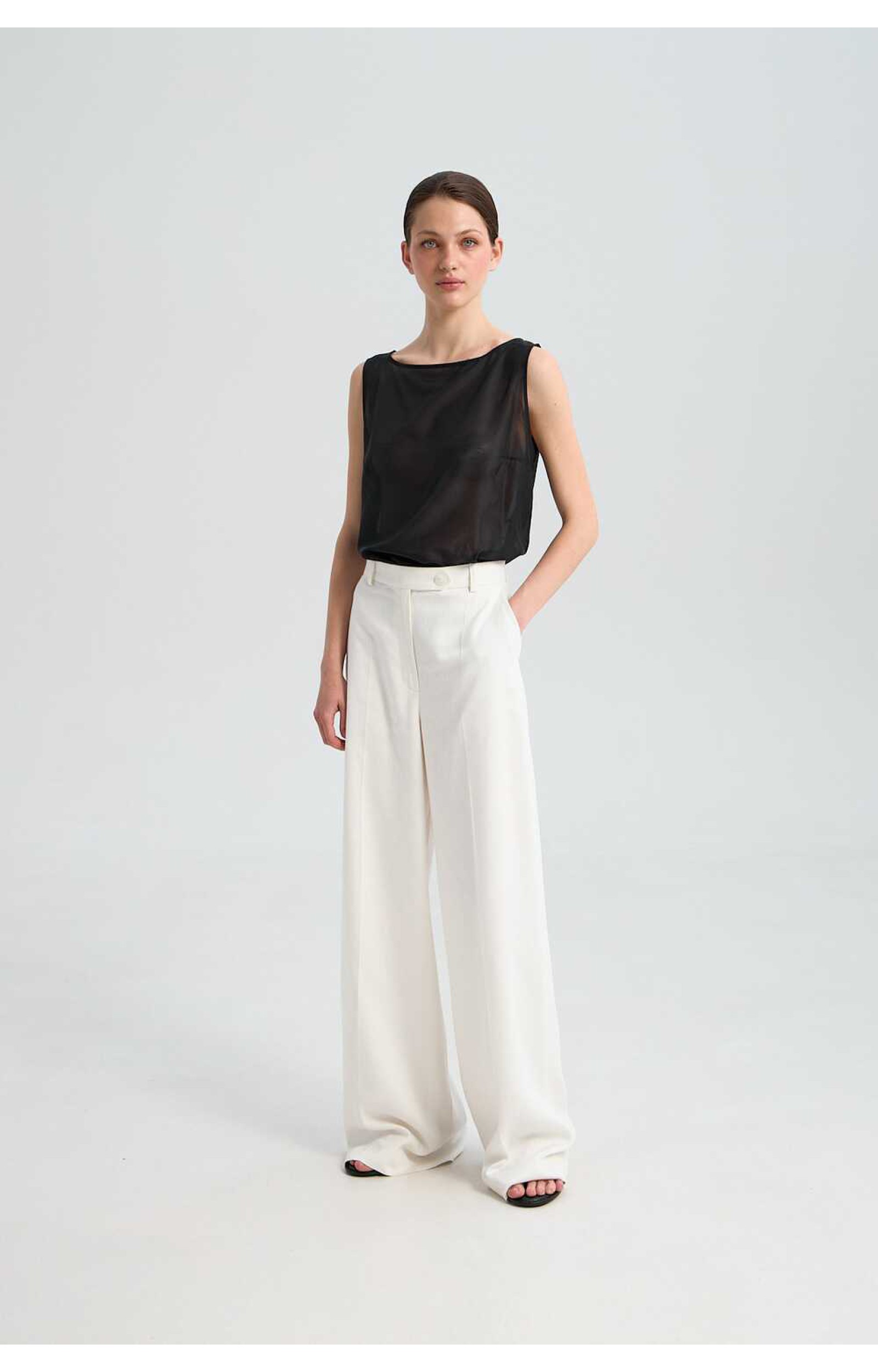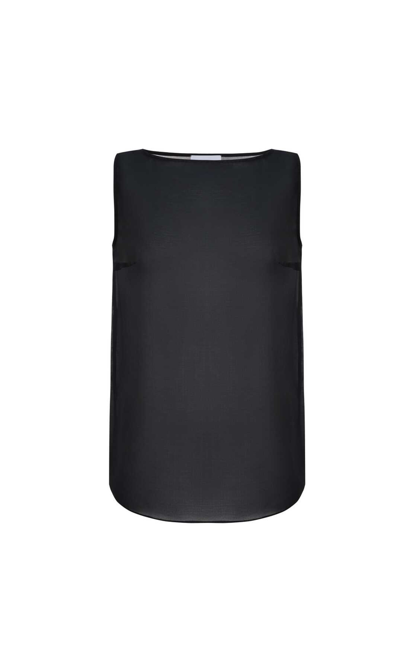 Dieses schwarze Top Midland ist der Inbegriff von Leichtigkeit, Raffinesse und Komfort. Hergestellt aus einer halbtransparenten Mischung aus 30 % Seide und 70 % Baumwolle, hat es eine lockere Silhouette, die maximalen Komfort bietet. Breite Träger und ein runder Ausschnitt verleihen dem Kleidungsstück Eleganz, während sein minimalistisches Design es ermöglicht, es mit verschiedenen Teilen der Garderobe zu kombinieren, um sowohl Abend- als auch Alltagslooks zu kreieren.