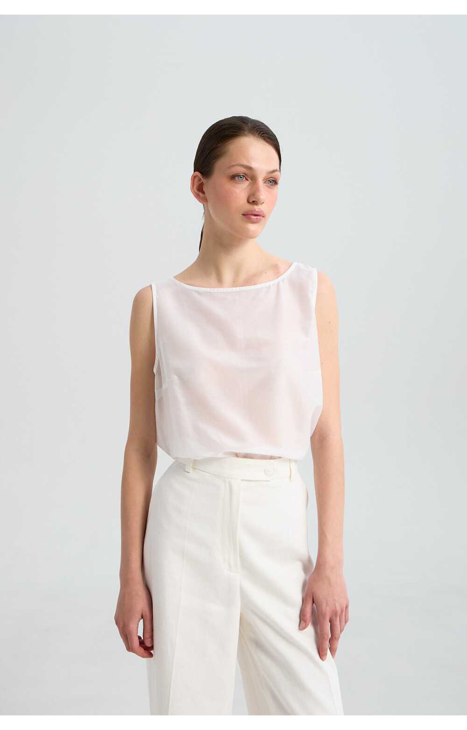 Dieses weiße Top Midland ist der Inbegriff von Leichtigkeit, Raffinesse und Komfort. Hergestellt aus einer halbtransparenten Mischung aus 30 % Seide und 70 % Baumwolle, hat es eine lockere Silhouette, die maximalen Komfort bietet. Breite Träger und ein runder Ausschnitt verleihen dem Kleidungsstück Eleganz, während sein minimalistisches Design es ermöglicht, es mit verschiedenen Teilen der Garderobe zu kombinieren, um sowohl Abend- als auch Alltagslooks zu kreieren.