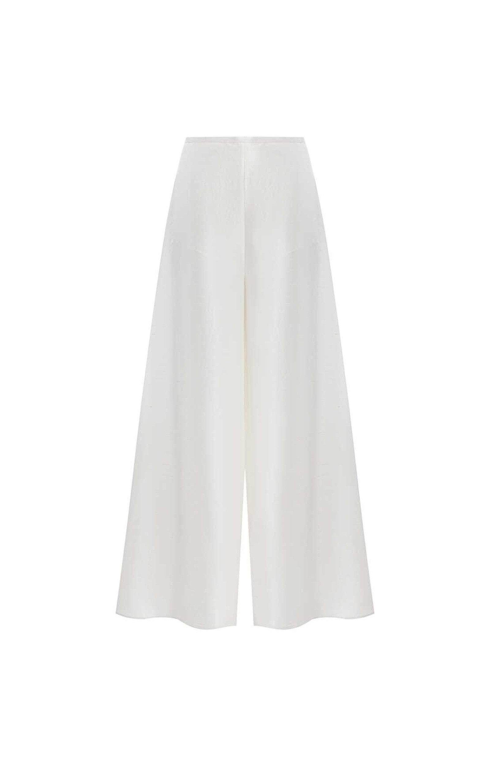 Diese weite Hose mit hohem Bund ist die perfekte Kombination aus Eleganz und Komfort. Hergestellt aus dünner, halbtransparenter Viskose, verleiht sie jedem Look Leichtigkeit und lässt sich hervorragend als Kostüm mit der Bluse Butte White kombinieren. Die Hose hat einen seitlichen Reißverschluss, und das Futter in Form von Shorts sorgt für maximalen Komfort. Diese Hose ist ideal für den Alltag sowie für besondere Anlässe.