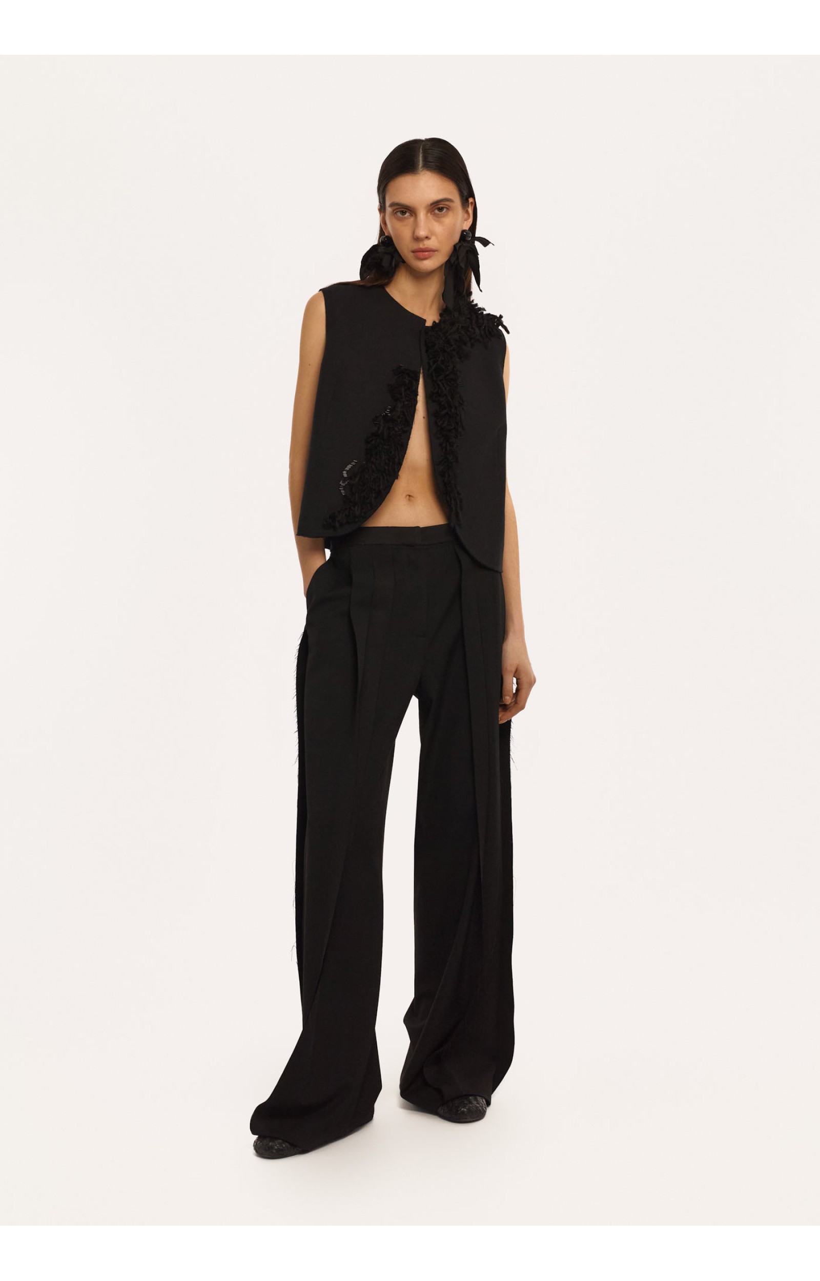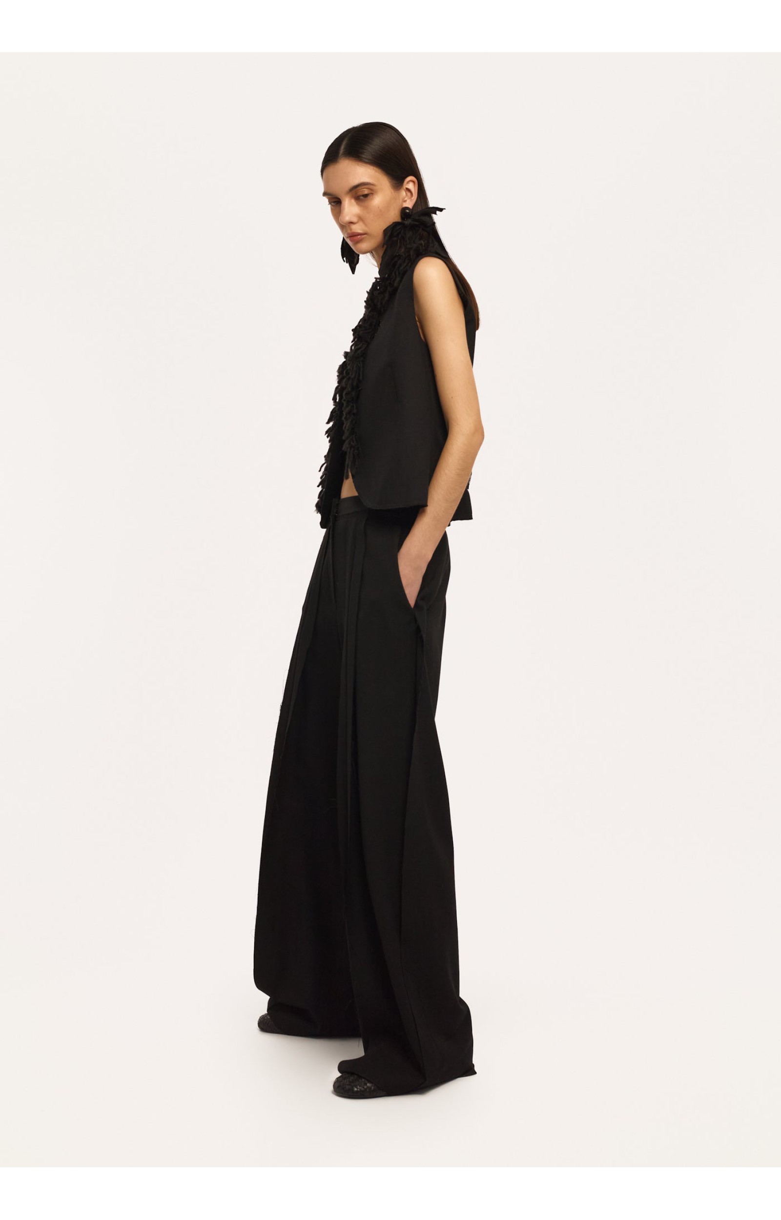 These black trousers by Bobkova blend a relaxed style with elements of avant-garde design.